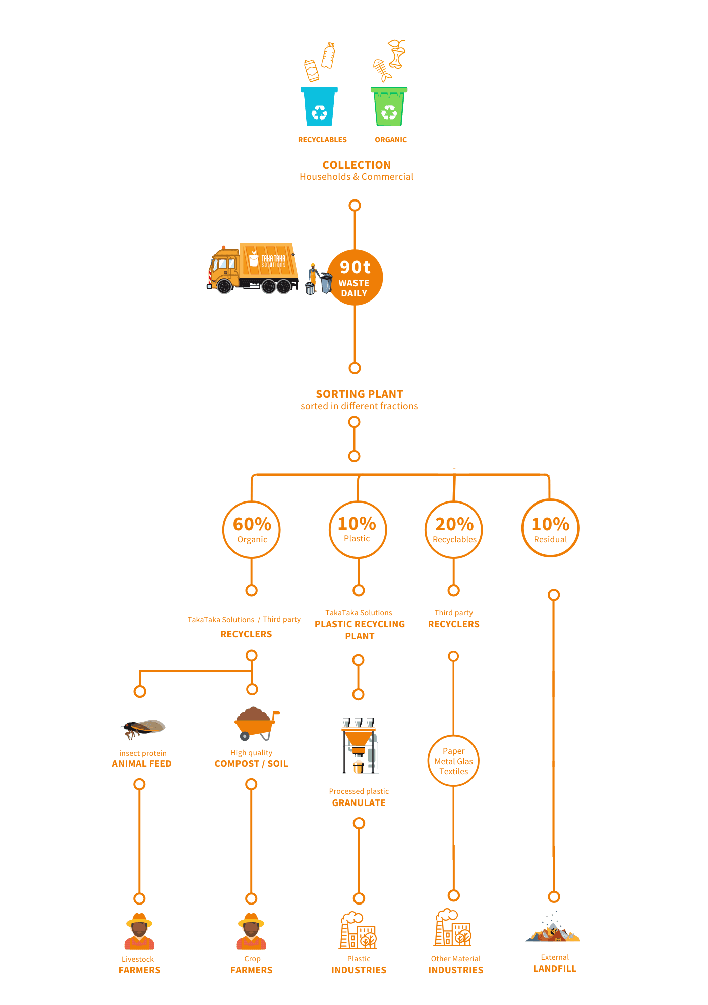 We recycle 90% of the waste we collect. Our facilities process all collected waste, transforming plastics, organics, and other recyclables into valuable materials.